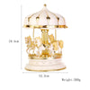 As a wind-up carousel music box, it plays a sweet, soothing melody as the horses rotate, creating a peaceful and enchanting atmosphere that is perfect for playtime or bedtime. This high-quality piece is crafted with care, making it not only a beautiful addition to a nursery or bedroom but also a cherished keepsake that can be enjoyed for years to come and passed down as a precious heirloom.